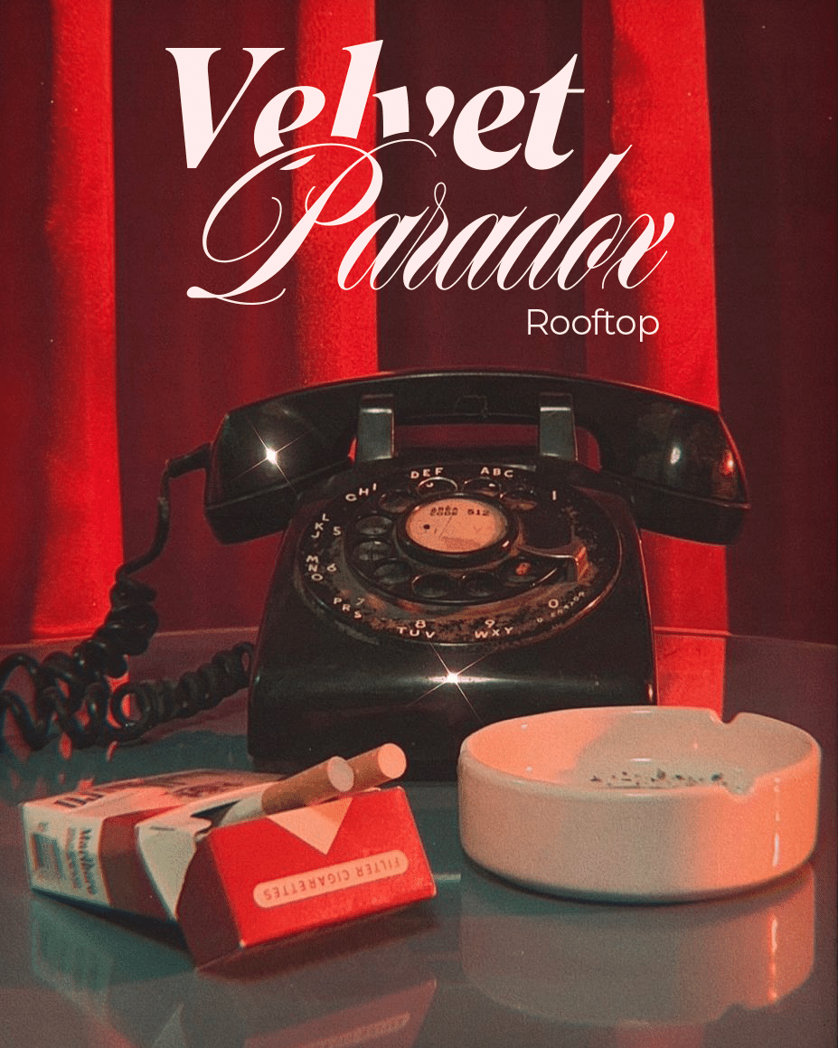 Velvet Paradox est un projet conceptuel d’événement rooftop imaginé comme une expérience immersive nocturne.